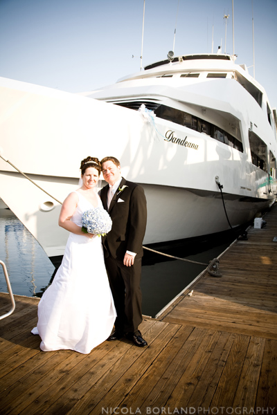 Alexandra and Ben were married on August 16th aboard the Dandeana, a yacht through the wonderful Fantasea Yachts, based out of Marina Del Ray.  It was a beautiful day at the marina, and close family and friends were there to share the day with them.  Alex is French Canadian and met Ben while he was stationed there in the Navy.  He was the charming southern gentleman that whisked her away to live in the USA.  Her family and best friends flew in from Canada to be there and his from across the country.  There was a small language barrier, but luckily the language of love, weddings and dancing are universal and the barriers soon came down!  I think it is safe to say that this wedding had the most enthusiastic dancing I have seen in a long while!  Here are a few special images from the day, and below them a link to a cool slideshow of the day, set to music. Thanks Alexandra and Ben for letting me share your amazing day!