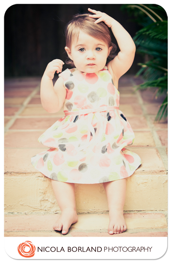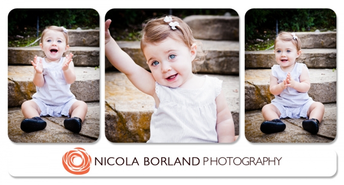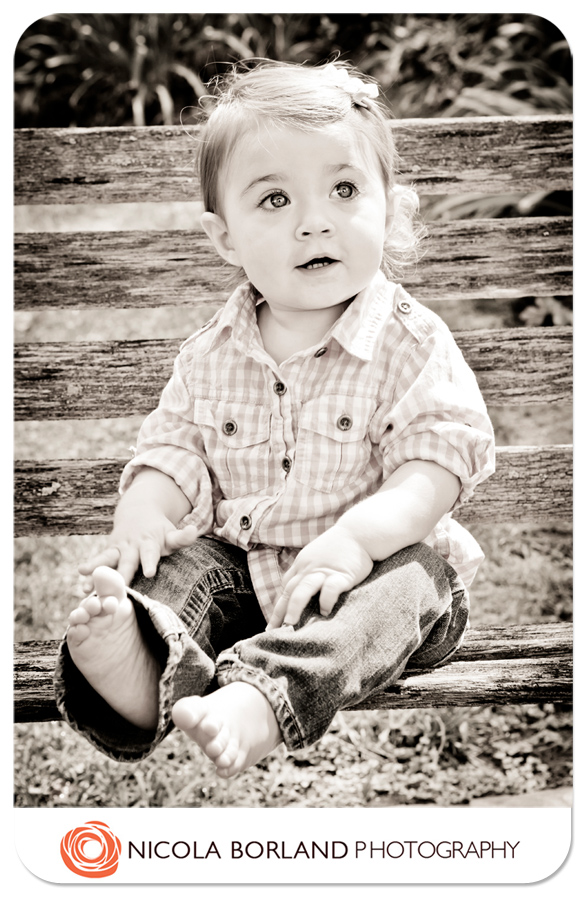 Ummm…so cutest baby in the world or what?????? I have had such pleasure watching Emma grow up over the last year with our newborn and six month sessions as part of my Belly to baby Collections. Every time I see her she just gets cuter! Those big bay blues get me every time. It was really cool to see her walking and with hair too! She was very well behaved for the session and mum, dad and grandma where excellent helpers with the singing and dancing and clapping portion of the session.